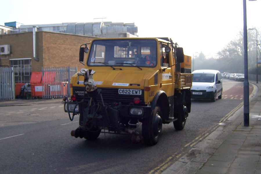 | Details: A Mog in motion! As mentioned last June, the two Mercedes-Benz Unimog road-rail trucks that have spent many years in store at Lillie Bridge were moved to Acton Works, most likely by low-loader. They evidently received some attention since they both left the works under their own power on 21st January 2014. By lucky coincidence, at the same time Ray was on Bollo Lane waiting for something interesting to photograph! First up was L85 (C622EWT) with its front-mounted coupling raised. The van behind is Peugeot Partner CF13NRU. Although unmarked, and registered in Wales (whereas most SVs are registered in London), this van appears to have been working out of Acton since it was new in July 2013. Similar CF13NRV has also been reported. | ||||