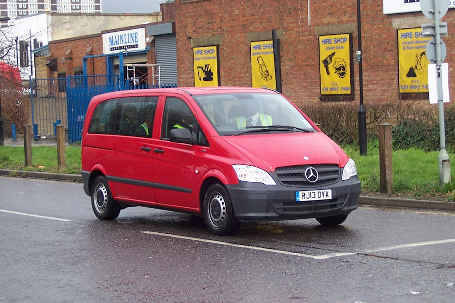 | Details: Also used as anonymous crew ferries from Northumberland Park Garage are a pair of Mercedes-Benz Vito minibuses. RJ13DYA was leaving the garage when photographed on 25th February 2014. | |||