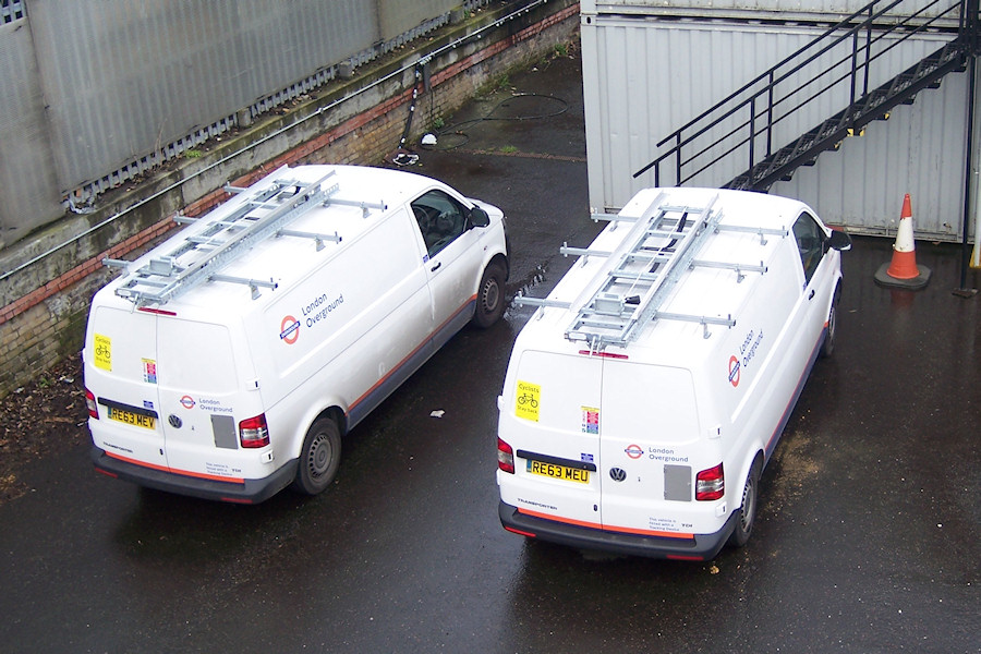 | Details: A new correspondent mentioned seeing some London Overground vans parked at Dalston, and Ray duly went off to investigate. This photo was taken from the overbridge on Richmond Road, and shows a small yard next to the track just south of Dalston Junction Station. Present on 28th February 2014 were two Volkswagen Transporter vans. Both are long-wheelbase, low-roof examples, with ladder racks. Further reports would be appreciated so that I can decide whether or not this needs to be added as a location. | ||||