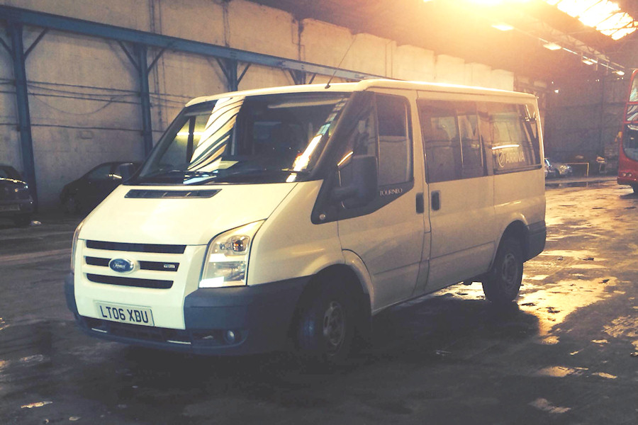 | Details: Photographs taken within bus garages are always of interest. This is Arriva's Dartford Garage on 7th February 2014, with one of the recently acquired Ford Tourneo minibuses on show. These were transferred from co-owned TGM and are being used to oust the former London taxis in the crew ferry role. LT06XDU (the bolt in the registration plate can make it look more like LT06XBU) is allocated fleetnumber VF130. | ||||