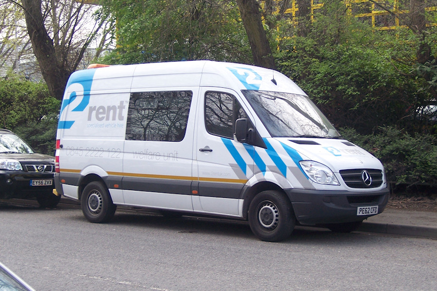 | Details: Among the group of staff welfare vans Ray found at North Crescent (West Ham) on 2nd April 2014 was Mercedes-Benz Sprinter van PE62CFD in the livery of hire firm 2 Rent. Similar vehicles PE62CFG and PE62CFJ carry Tube Lines logos on plain white livery but are also believed to be from 2 Rent. | |||