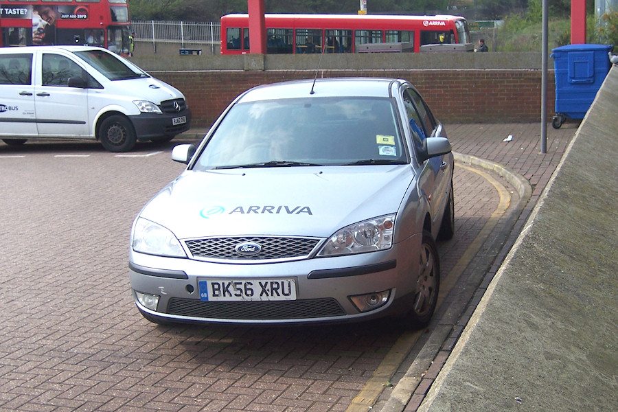 | Details: The two silver Ford Mondeo cars used by Arriva Southern Counties at Grays for the past few years were both transferred across the river to Dartford in late-2013/early-2014. BK56XRU (allocated fleetnumber CF26) was photographed at Eltham Bus Station on 27th March 2014, with one of the Metrobus Mercedes-Benz Vito minibuses in the background. | ||||