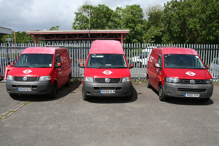 | Details: This is the yard at Orpington Bus/Rail Station on 10th May 2014. I had marked this location as having been closed in 2012 but this was evidently incorrect. What did happen was that the portakabins at the site were removed following the opening of a new office in Lagoon Road, St Mary Cray. Whilst vehicles were sometimes parked at the new base, use of the original yard appears to have continued. The vehicles present on this date were the usual mixture of LBSL Infrastructure Volkswagen Transporter vans. 6830VW on the left and 6904VW on the right are both mid-height, although the latter has the facelifted front-end. In the middle is high-roof 6821VW. The older vans have now served for over four years and must be due for replacement. Note the faded condition of the (fibreglass?) roof panels, a common feature of this model. | ||||||