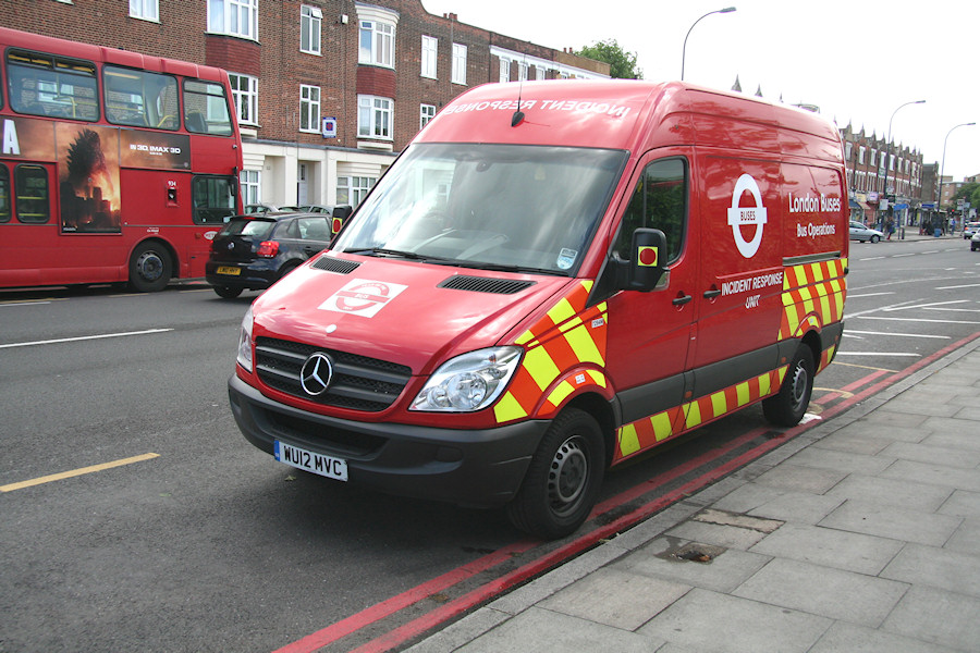 | Details: An open day was held at Catford Bus Garage on 10th May 2014, both as part of the Year of the Bus, and to mark the garage's centenary. A Sovereign tow truck was on display, along with the Catford engineers van and several LT Museum vehicles. Also present was 7288M, one of the LBSL Incident Response Unit vans based at Eltham. However, perhaps of more interest was similar 7294M (also from Eltham), which was photographed parked on the road outside the garage. This van had had its bonnet roundel replaced with a 'Year of the Bus' one (as also to be seen on many London buses at present). | |||