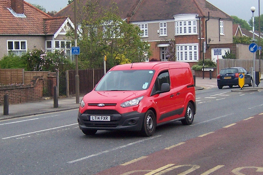 | Details: The first example of the redesigned Ford Transit Connect (which I will be showing as 'Mk.2') reported as a service vehicle was LT14FXR, an unmarked red van. From seeing this several times, Ray deduced that it was operated by LBSL and had replaced older (and equally anonymous) 7031F. On 29th April 2014 he managed to capture it passing through Eltham. | |||