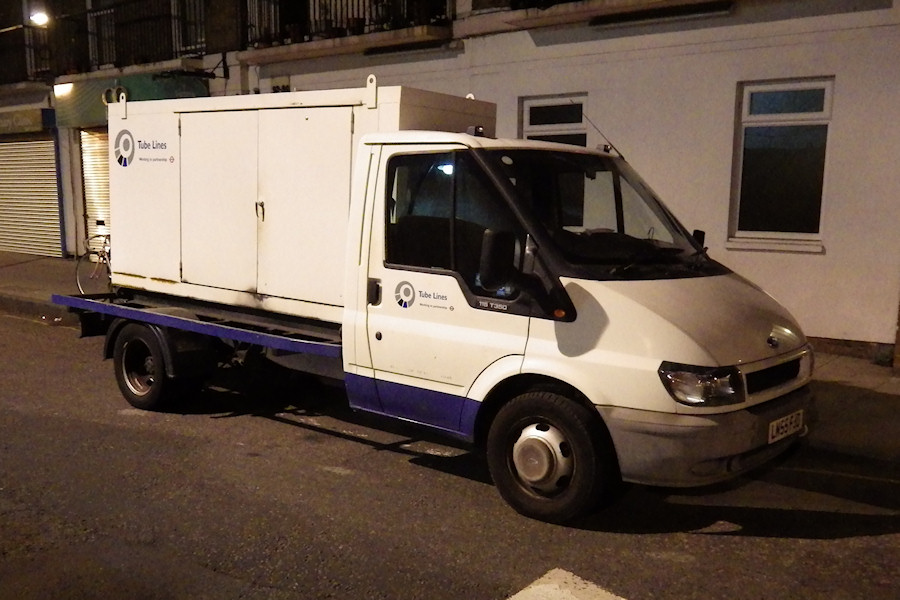 | Details: Just three vehicles in the 5xxx number range remain in stock at present, although it is notable that none of them actually carry their allocated fleetnumbers. Also, they have all been modified to some extent and have most likely been purchased. The LT Museum's 5494F is the best known of the trio, the other pair being Ford Transit trucks fitted with generators and based at Lillie Bridge. Although they can be glimpsed (just) from the West Cromwell Road bridge, they are rarely seen (and thus photographed) out on the road, particularly in daylight. On the night of 16th July 2014 Ray came across 5909F parked on Drummond Street at Euston. New in 2006 as a mobile exhibition unit for the London Safety Camera Partnership, it was rebuilt in early 2010 with the generator removed from Mercedes-Benz Sprinter 2562M (which it replaced). Along with similarly-equipped 5474F and 2584M (and three Cobul box trailers), the vehicles are assigned to 'ventilation' duties. | |||