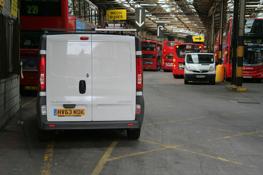 | Details: Peering into Wood Green garage on 5th August 2014, Derek found a pair of white Vauxhall Vivaro vans present. HV63MDK has already been shown on LTSV, and carries Arriva PSM lettering on the sides. Although it could not be checked, similar HY63YSG is presumed to be the same. I'm still not sure what PSM stands for, but Derek mentioned that the drivers wore 'Arriva Building Maintenance' overalls. | |||||