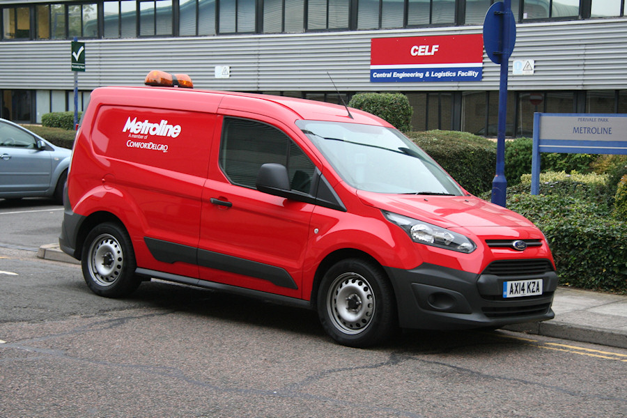 | Details: The new Ford Transit range has yet to make much impact on the service vehicle scene. The new Connect van is slightly larger than the earlier model, and an unmarked example is used by London Buses. The first to be reported with a bus company is Metroline's AX14KZA, photographed parked outside the CELF works in Perivale on 17th September 2014. The fleetname on Metroline vehicles used to include the Comfort Delgro name in blue and orange. This was apparently against TfL policy, so buses (and newer service vehicles) now have fleetnames just in white. | ||||