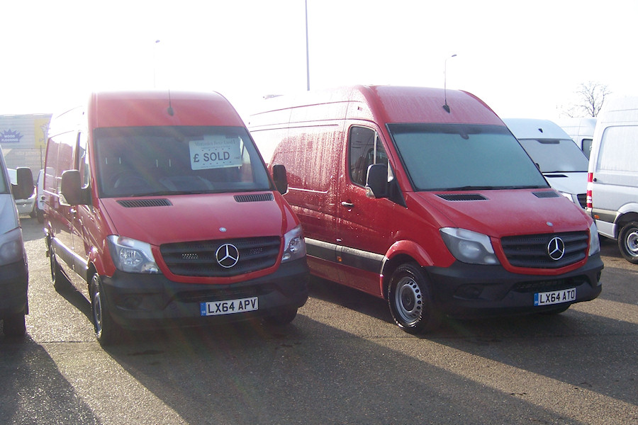 | Details: A photograph by Ray but the credit must also go to Derek. He caught a trio of red Mercedes-Benz Sprinter vans being delivered to Acton Works on 21st January 2015, and he noticed that they were accompanied by a Mercedes East London minibus. A couple of days later Ray took himself to their premises in Rippleside and found twelve more vans present. Six were un-registered, while the remainder had curiously been first licensed almost three months earlier (31st October 2014). Note that the vans already have the light-bars (and grille lights) but have yet to gain any lettering. It seemed likely that these vans would become Incident Response Units for London Buses, but previous batches of these had come from Rygors of Bedfont, had been fully liveried before delivery, and were generally licensed just before delivery. | ||||
