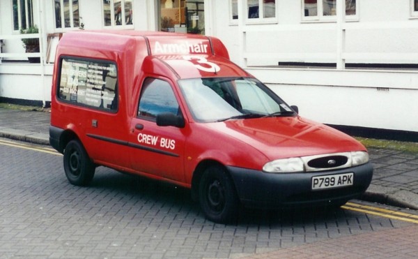 | Details: The car that wanted to be a bus! As other examples have illustrated, one of the more recent roles of service vehicles is that of crew ferrying, taking bus crews from operating centres to route terminals. Armchair Passenger Transport tendered for quite a range of routes across West London, many of which were remote from the depot at Brentford. To facilitate these, a fleet of so-called Crew Buses was operated, including this Ford Courier numbered 3 (P799APK) and photographed at Richmond bus station on 3rd February 2001. This design of vehicle is more commonly seen as a van, the windowed version being mainly used for wheelchair carrying functions. | |||