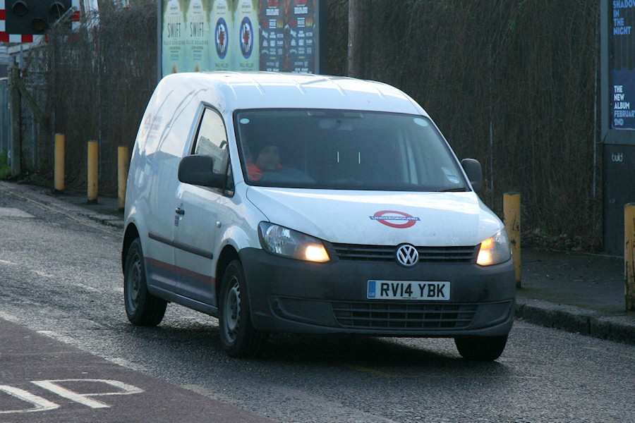 | Details: Volkswagen Caddy van 7814 was new in May 2014 and carries LUL livery with Transport for London lettering. It is most likely based at Stratford Market Depot but was photographed approaching Acton Works on a gloomy 28th January 2015. Note that the fleetnumber lacks the manufacturer suffix. | |||
