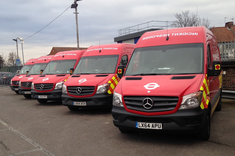| Details: In June 2013 Morden Station replaced Sycamore House (Thornton Heath) as the base for London Buses Operations vehicles covering South and South-West London. Up to eight of the Mercedes-Benz Sprinter Incident Response Unit vans are based there, and the location was among the first to receive replacement vehicles in early 2015. By 10th February (when this excellent photo was taken), four new vans had been delivered. From the front these are 7874M, 7864M, 7870M and 7867M. Completing the line-up is an un-identified example from the 2012 batch. The subtle design changes around the headlights and grille can be seen. | |||||||