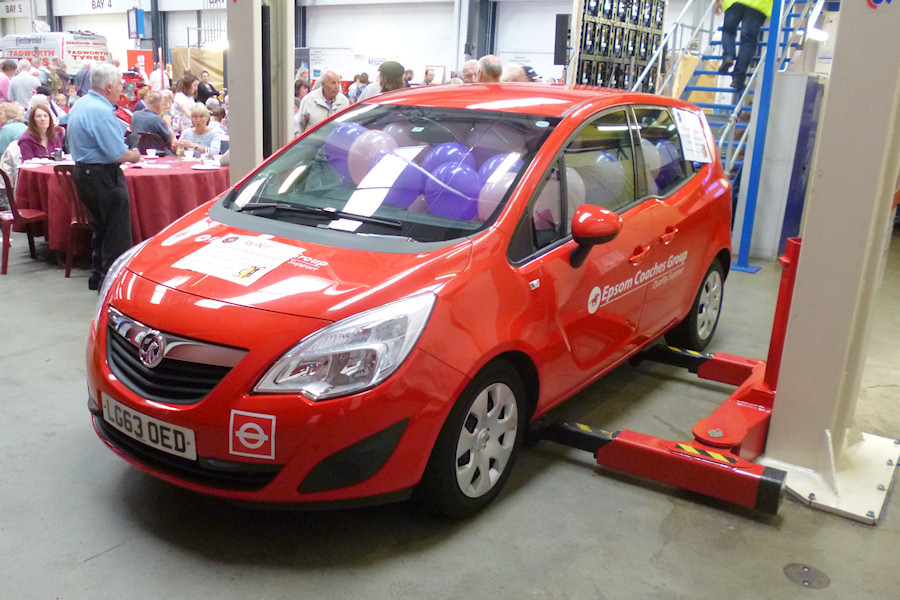 | Details: On display during the excellent open day held at Epsom Buses' garage on 20th June 2015 was this Vauxhall Meriva car parked in the vehicle workshop. It was rather unusually filled with balloons in connection with a competition to win a Karcher car wash! Another curious aspect is that it has lost the yellow chevrons it carried when new, although it still retains the Quality Support lettering. | ||||