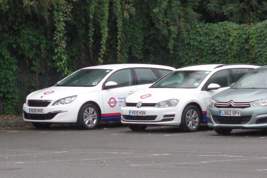 | Details: Two recently delivered LUL estate cars were photographed in the car park at Acton Works on 5th September 2015. 8084P on the left is one of a largish batch of Peugeot 308s leased from August onwards. On the right is Volkswagen Golf 8061VW which had spent all of August parked here. It is thought to be destined (along with similar 8060VW) for Leyton Westdown Road to replace older Golfs 7043VW and 7044VW. | |||||