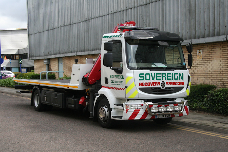 | Details: This is not a service vehicle as such, being a Renault Midlum flatbed lorry of the type used to recover cars and vans. It has been included for a couple of reasons, firstly that the BU51TOW registration (which would be quite suited to a bus recovery vehicle) has been transferred from an earlier Mercedes of similar format. Secondly, the truck was photographed parked outside Metroline's CELF works in Perivale on 7th May 2015. | |||
