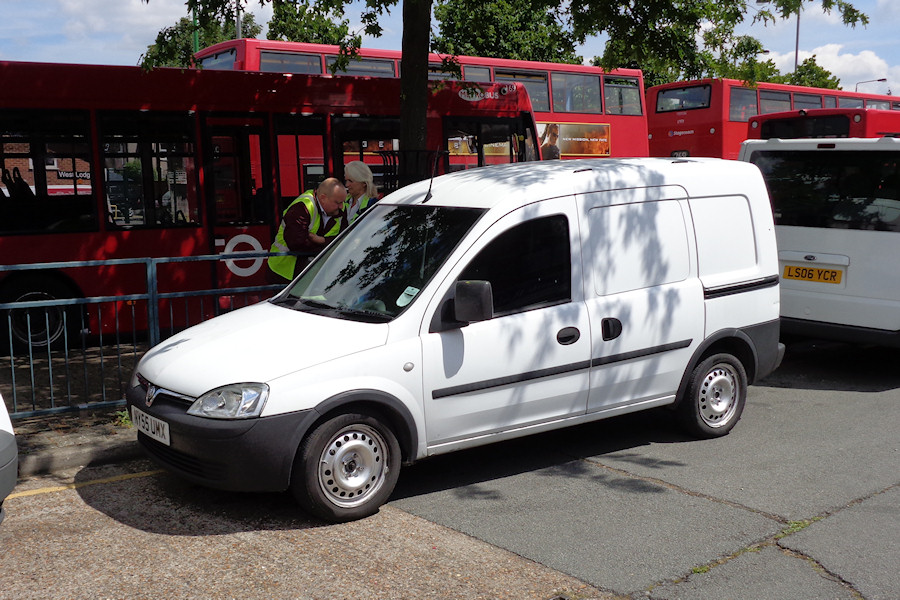 | Details: This unmarked Vauxhall Combo van photographed at the bus stand in Bexleyheath on 24th June 2015 was evidently being operated by Arriva Kent Thameside from Dartford (as per the Ford Tourneo minibuses on either side). However, it was first used as a service vehicle by Arriva the Shires, with whom it carried fleetnumber 1148 by 2010. Being based at Harlow it came under the TGM Essex operation when that was split off in 2010. It was allocated fleetnumber V592 but there is no evidence that this was ever applied. Similar van YB53YXZ was 1153 with the Shires then V612 with TGM Essex. This too turned up at Dartford in 2015, still carrying its original number. | |||