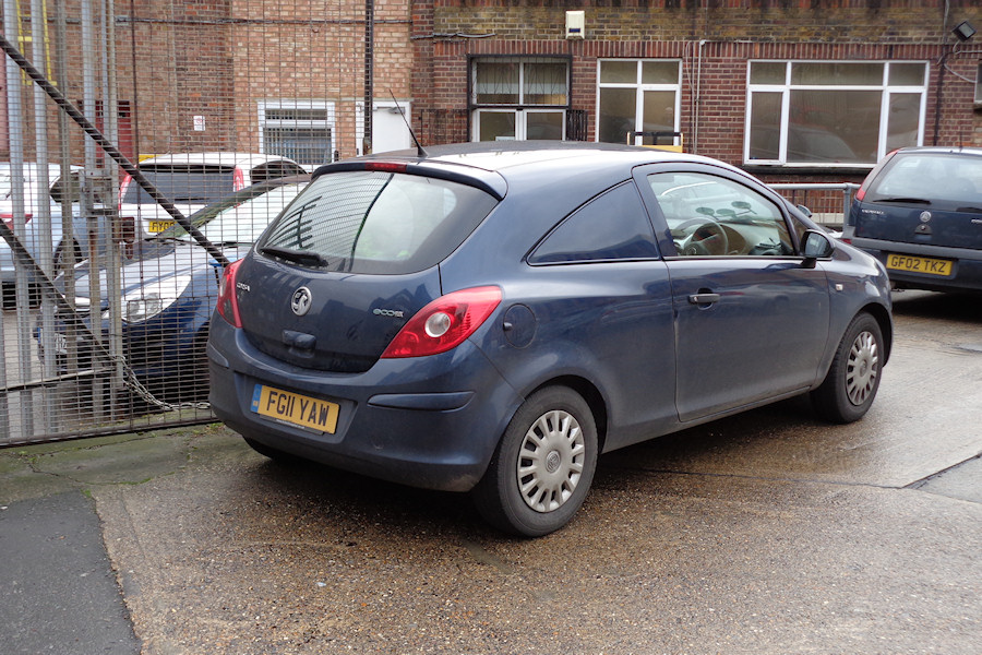 | Details: The car park of Arriva London's Watsons Road offices (at the back of Wood Green bus garage) contained a couple of unmarked vans on 4th January 2016. Nearest the camera was Vauxhall Corsa van FG11YAW, with similar FG11YHZ visible beyond. | ||||