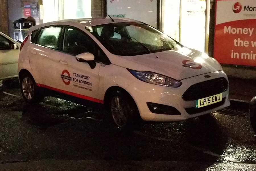 | Details: Photographed in Amersham on the grotty night of 26th March 2016 was Ford Fiesta hatchback car 8050F in London Underground livery. At least 25 Fiestas were added to stock in 2015, the type having been rare for the previous decade. 8050F is believed to be based at Lillie Bridge along with similar LP15YUN, which is probably numbered 8051F. | |||