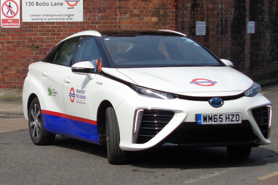 | Details: Oooh, here's something different. Caught leaving Acton Works on 12th May 2016 was a rather sleek looking car in full LUL livery (though without fleetnumbers). It turned out to be a Toyota Mirai hydrogen fuel cell car, first licensed at the end of January. Two Hyundai IX35 cars with similar propulsion systems had been seen in spring 2015 but seem to have disappeared. | ||||