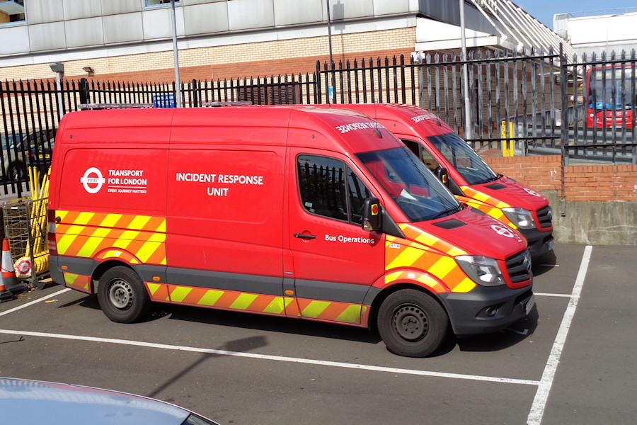 | Details: Continuing the coverage of the 2015 fleet of Incident Response Unit vans, this view was taken at Edgware Bus Station back on 8th August 2015. Nearest the camera is 7871M with 7878M beyond. Both were new in February 2015. | |||||
