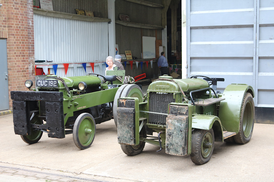 | Details: Although basically the same, the two preserved former LT tractors have a few significant differences. 351X on the left has solid tyres, electric lights and a registration plate. 626X on the right has pneumatic tyres, mudguards with a running board between them and what seems to be some sort of platform (or seat?) alongside the engine. Both tractors have a wire strop running over the radiator header tank that appears to hold up the beams to which the front buffers are attached. These two tractors probably never met during their LT careers. 351X was only ever at Charlton works, going from there straight to the British Transport Museum. 626X worked from Hertford and Edgware garages before spending its final ten years at Chiswick Works. | ||||