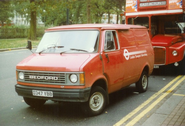 | Details: The publicity department of London Transport was responsible for posting timetables, posters and adverts at bus stops and underground stations. For some years the section had a preference for vans with sliding cab doors, and also for the Bedford CF model. 3434B (D347YBB) was an example of the last batch of CF vans, taken into stock in 1987. These were also the last publicity vans to carry red livery, as plain white was later used, up until the duties were contracted out. This view taken at Shepherds Bush on 11th September 1989 shows the lettering used at the time. Of note is that the fleetnumber and cab door lettering has been removed. | |||