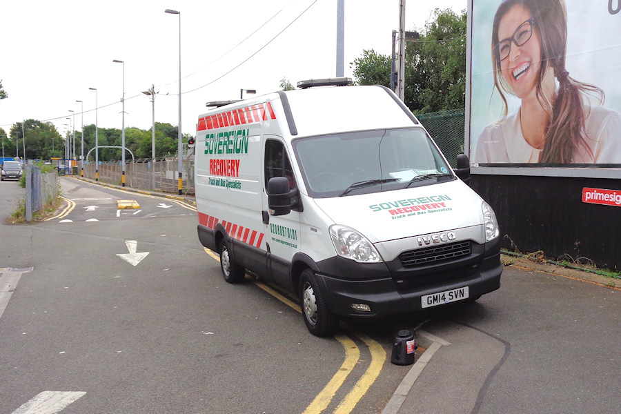 | Details: Sovereign Recovery bought a batch of (at least) five Iveco Daily vans in 2014. GM14SVN was seen at Stratford Bus Station in 2014 but now seems to be used to cover west London. On 1st August 2016 it was parked outside Ruislip Station. The roadway in the background leads to the station car park, at the end of which is a small yard in which LUL service vehicles can sometimes be seen. | ||||
