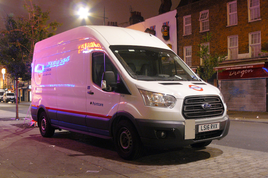 | Details: The second Pointcare Ford Transit van found at Camden Town on the night of 18th/19th August 2016 was 8114F. This photo was taken at 2am on a Thursday but (despite appearances) there were still lots of people around. | |||