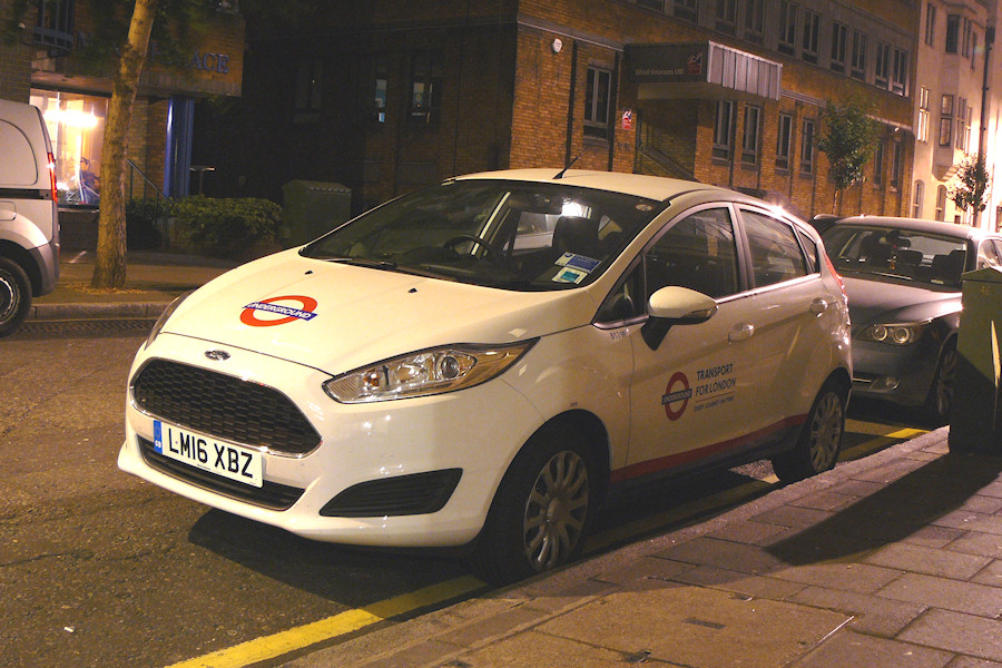 | Details: Ford Fiestas continue to be added to the central fleet, with another pair for LUL seen at Acton Works this weekend. A slightly earlier delivery was 8179F, new in June 2016 and since noted a couple of times at Griffith House. It was nearby on Harcourt Street on the night of 18th/19th August 2016. | ||||