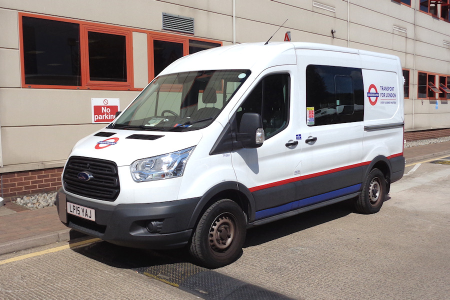 | Details: The first batch of Mk8 Ford Transits for the central fleet (as opposed to ones and twos) were five crew vans that arrived in June 2015. Medium wheelbase and mid-height, they were numbered 7956F to 7960F and all but the last are based at Acton Works. Seen there on 30th August 2016 was 7956F. Many similar vehicles arrived from late 2015 onwards but these were mostly fitted with roof-racks. | ||||