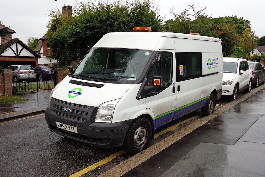 | Details: There are at least 8 service vehicles in the white/blue/green livery of the Croydon Tramlink operation. Ford Transit crew van 7586F was new in January 2013 as part of a batch of vehicles delivered in unmarked white livery. It worked for LUL for a while but was with Tramlink by the end of that year, and was repainted by the end of 2014. On 29th September 2016 it was found parked near to Sandilands tram stop. | |||