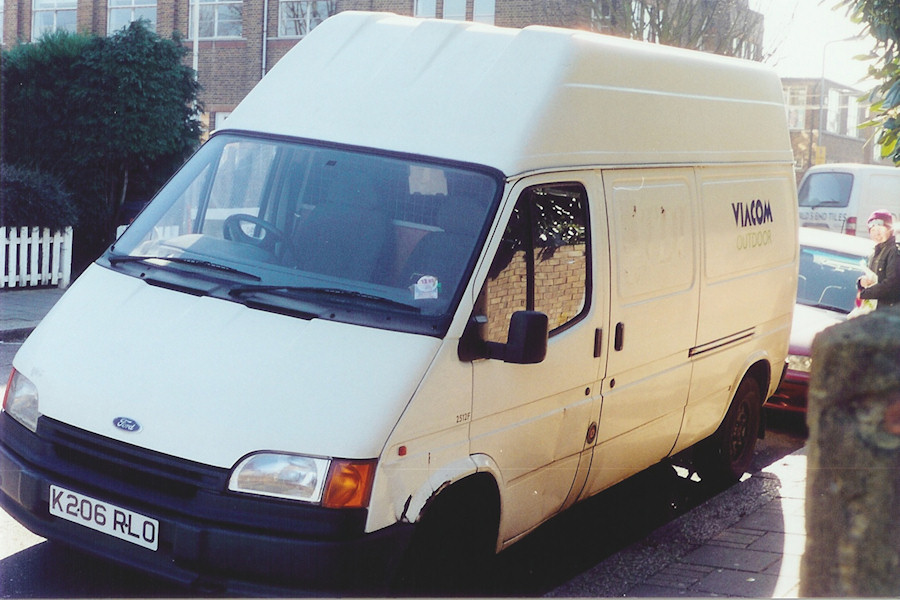 | Details: Photographic coverage of owned vehicles numbered in the 2501-2599 range is pretty good, with a couple of exceptions. The biggest gap is of the ten high-roof Ford Transit vans numbered 2512F to 2521F new in January 1993. The only photos I have of any of these vans were taken either before entry to service or after disposal, so I have never been certain what livery they carried. One of the ten lasted just two months, 2519F being withdrawn in early April 1993, presumably with accident damage. It never worked again. The rest did not last much longer, all being taken out of stock on 6th November 1993. The vans were allocated to LT Advertising at Jamestown Road, and this operation was sold off (and rebranded as TDI), although I thought this took place in August 1994. Sightings suggest that the vans continued in the same work for some years still carrying their fleetnumbers. This is supported by this photo of the former 2512F parked in Streatham Hill (near Brixton bus garage) in February 2002. TDI had been renamed Viacom Outdoor in July 2001 and the van shows the new name, with traces of the TDI lettering towards the front. James has also photographed Ford Escort van 4348F carrying both TDI and Viacom lettering. | |||