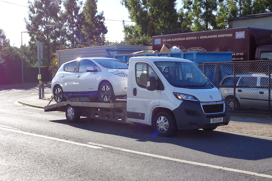 | Details: Nissan Leaf electric car LR66EYW was first licensed on 10th October 2016 and was delivered to Acton Works that day, loaded onto Peugeot Boxer flatbed transporter DK15AZN. Ray was on hand to record the moment (and to give the delivery driver some navigation help!). The car was soon given LUL livery and fleetnumber 8301N. | |||
