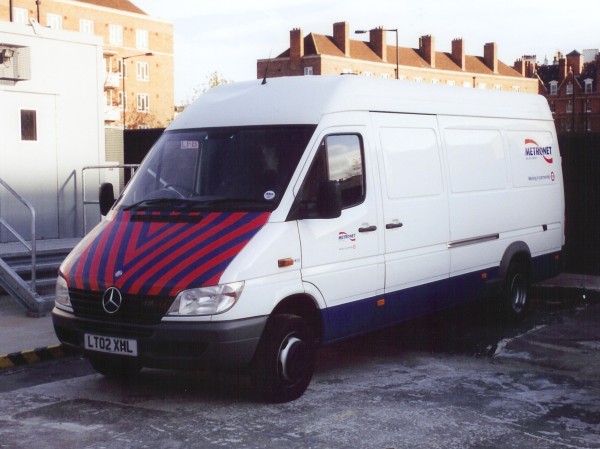 | Details: This Mercedes-Benz Sprinter van can often be seen parked in the yard behind Edgware Road station, although security gates have recently been fitted which restrict access. 5400M (LT02XML) is the only Sprinter in the leased fleet, and carries ERU livery with Metronet lettering. Note that the manufacturer's suffix is missing from the fleetnumber, a common feature on recent service vehicles. | ||||