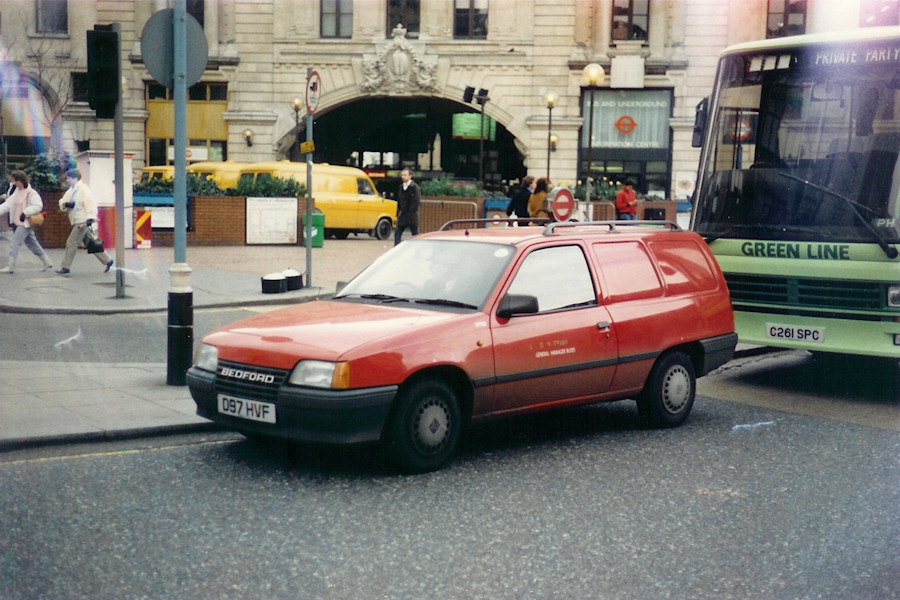 | Details: 3478B was an inspector's van often to be found parked in Victoria Bus Station and hence was one of the most frequently photographed service vehicles, despite only being in stock for about 15 months. Acquired on lease from Avis in November 1986, it was reportedly withdrawn in February 1988 while the majority of the same batch lasted until 1989 or 1990. I liked this photo (taken on 12th April 1987) because it also includes a Green Line TDL coach, a very unusual sight in the bus station. | ||||