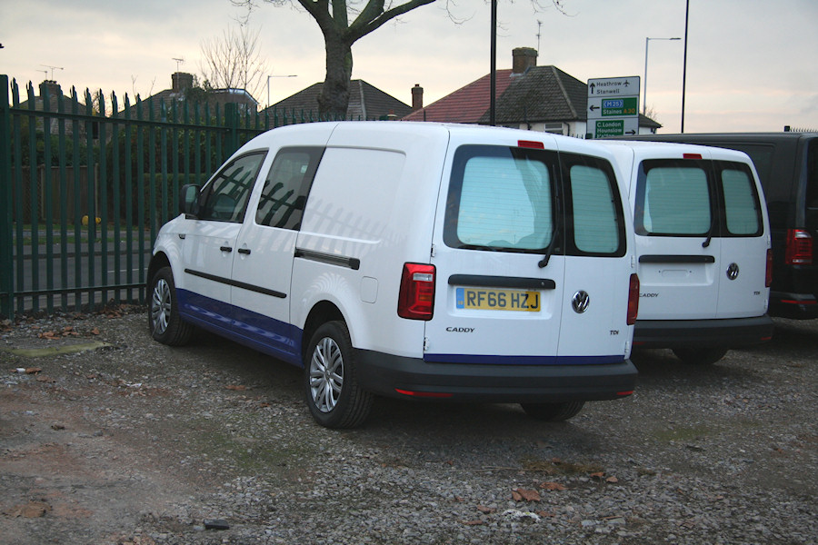 | Details: A largish batch of Volkswagen Caddy Maxi crew vans has been coming through the Bedfont dealership over the past few weeks. They could be destined to replace some of the many Renault Kangoo vans leased in 2012. Photographed on 20th December 2016 was RF66HZJ, with an un-registered example alongside. | |||