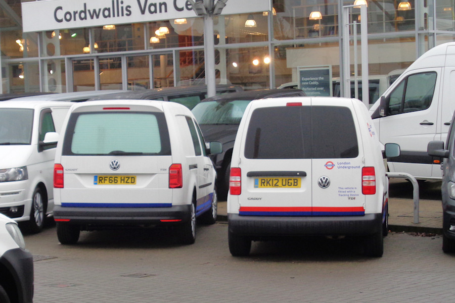| Details: Old and new 1. There are several points of interest about this photo taken at the Volkswagen dealership in Bedfont on the last day of 2016. On the right is Caddy van 7322VW in full LUL livery. This van has been based at Acton Works and has often been seen on Bollo Lane. Despite this, the only other photographs I have of it were taken at this same dealership when it was brand new in 2012. It is not yet known if 7322VW has been withdrawn or was just here for repairs. It could have been visiting to allow equipment and fittings to be removed for transfer to a new vehicle, of which quite a few were also present. On the left is Caddy Maxi crew van RF66HZD in unmarked white/blue livery. This is an example of the 'New' Caddy although, as with the larger Transporter van, the differences between marques are minimal. A very obvious difference is the fitting of a top-hung rear door on RF66HZD. This has always been an option on the VW Caddy model but, as far as I know, this is the first time it has been seen on a service vehicle, all others having the asymmetric, side-hung doors as seen on 7322VW. The final point concerns the recessed side windows and panels on Caddy Maxi RF66HZD, compared to the smooth bodysides of Caddy 7322VW. I have never noticed this before but it appears to be a standard difference between the two lengths. | ||||