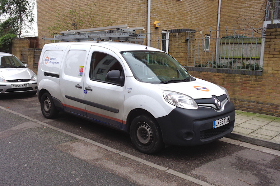 | Details: The fleet of vans operated by London Overground has seen some changes over the past few months. Of the 8 Renault Kangoo Maxi vans new over the turn of 2013/2014, one has been delicensed (7766R, possibly accident damaged) while three were disposed of to BCA in mid-January 2017 (7768/69/88R). These are amongst the highest numbered withdrawals to date, though they all achieved about three years' use and quite high mileages. One of the remaining four was 7763R, photographed on Reculver Road in Bermondsey on 10th January 2017. This location is just around the corner from the Infrastructure Maintenance Facility on Oldfield Grove, and is the same place where 7769R was found back in 2014. | |||