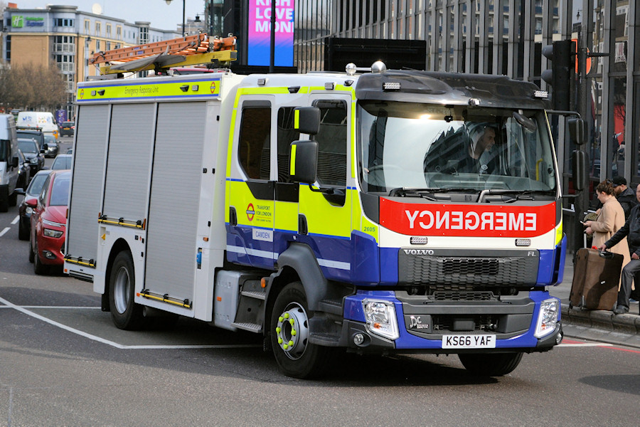 | Details: A fine view of Volvo FL816 rescue tender 2605 passing Old Street Station on 11th March 2017. Note the application of Camden allocation plates (or stickers to be more exact). | |||