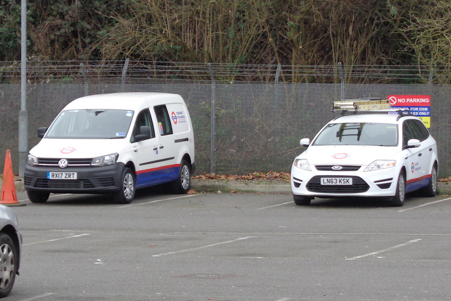 | Details: The most common single type added to the central fleet recently has been the Volkswagen Caddy Maxi crew van, over 30 being taken over the past six months. 8306VW was taken into stock in early March 2017 and was seen in the Acton car park on the 11th. It has since been seen at Camden Town, suggesting it is allocated to Edgware Track Depot as a replacement for one of the similar vans in the 7545VW to 7550VW batch. To the right is Ford Mondeo estate 7697F from Stratford Market Depot. One of only about five Mondeos in the fleet, this one can be recognised by the yellow ladder it always seems to be carrying. | |||||
