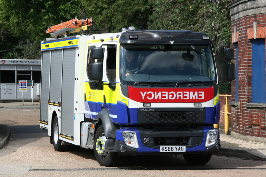 | Details: The 'new' Emergency Response Unit fleet has been in use for nine months now, although I have somehow managed to avoid seeing any of them. Fortunately many others have, and Derek caught this fine view of 2606 leaving Acton Works on 8th July 2017. No allocation plate is carried but this one is believed to be based here, and it was in standard ERU livery when seen. | ||||