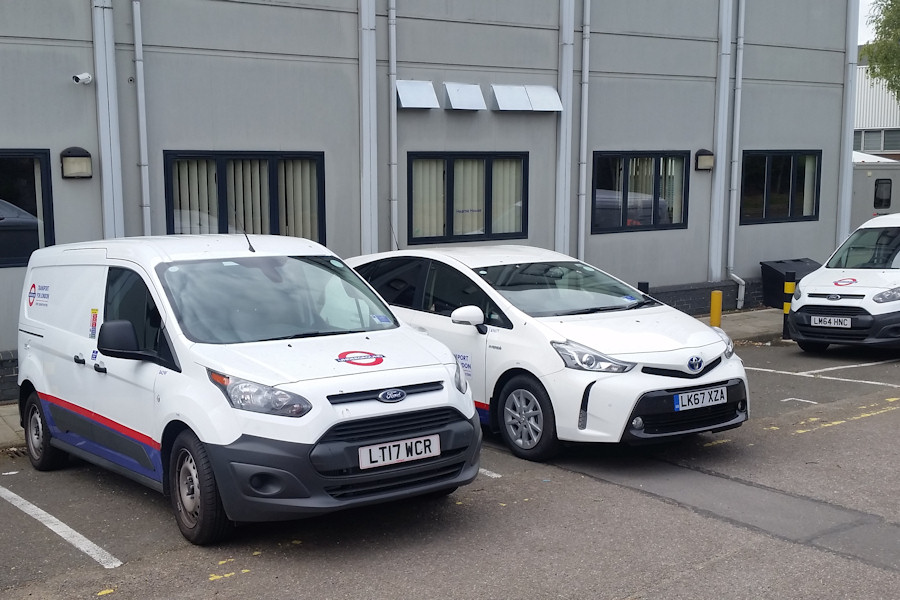 | Details: An open day was held at the Acton Museum Depot recently and, as usual, vintage bus rides were offered, this time using RM1 and newly-restored RML3. Because the rear yard of the depot was given over to entertainment and catering facilities, the buses entered adjoining Hearne House to turn around, albeit not whilst carrying passengers. Contributor Damon Cross was acting as a conductor for the weekend and was able to grab this interesting view on the Saturday (23rd September 2017). Visible are two of the Ford Transit Connect Mk2 vans which this location seems to have a fondness for (8429F on the left and 7931F peeking in from the right). Note the offside cargo door on 8429F. Of more interest is the newly-delivered Toyota Prius car in the centre. Numbered 8567T, this carries LUL livery of white with a blue skirt and red stripe but lacks the normal roundel on the bonnet, and the side lettering is on a removable label. Furthermore the frontal design is markedly different from other recent Prius deliveries, while the rear end has a slightly flatter roofline and a kick-up on the windowline. This reveals that this is in fact a Prius+, the station-wagon variant. All Prius cars are technically hatchbacks but the Prius+ has three rows of seats and is in essence an estate. The original Prius has two rows of seats and looks like a saloon car. It seems likely that 8567T had just replaced un-numbered Ford Mondeo estate LT63WXS, which also carried labels (though on a plain white livery), and which was in the works car park that day. | |||||