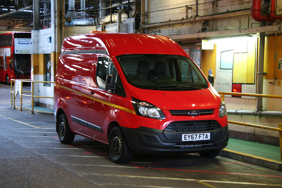 | Details: Among several new Ford vans for the Go-Ahead London fleet in autumn 2017 was a high-roof Transit Custom with registration number EY67FTA. It was allocated to Putney Garage, where it was photographed on 3rd October 2017, at which point it was still in unmarked red with a yellow safety stripe. | ||||