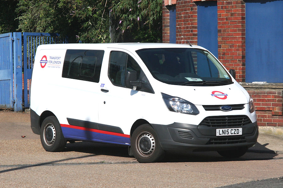 | Details: A large batch of Ford Transit Custom crew vans was delivered for use by the Lifts and Escalators section based at Frank Pick House (Acton) in 2015. There were 23 in total, taking numbers 7911F to 7938F apart from 7930/7931 and 7936. 7933F was one of the vans that is not normally based at Acton, although it does make the odd appearance, as here on 5th August 2017. I should mention that, since the changes in the lorry yard at Acton Works, there is now a roadway through from Frank Pick House. Their vehicles can therefore be seen leaving via the main Works entrance. | ||||