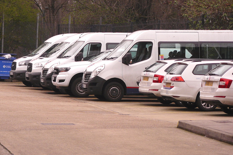 | Details: Leyton Westdown Road (also known as Drapers Field) is home to nine service vehicles, which are usually quite easy to see from the entrance gate. The gate does limit the photographic opportunities though, hence this image, taken on 11th April 2018, is very like ones from 2015 and 2011. The latest additions to the allocation here are Ford Transit crew van 8328F (at the far end here) and two Skoda Octavia estate cars which replaced VW Golf estates 7043VW and 7044VW. For some reason the two Skodas were not given consecutive fleetnumbers and seen here are 8218S (nearest on the right) and 8184S (third from the right). All nine vehicles were in fact present, but one of the two VW Golfs was just peeping in on the far right and has been cropped out. | ||||||