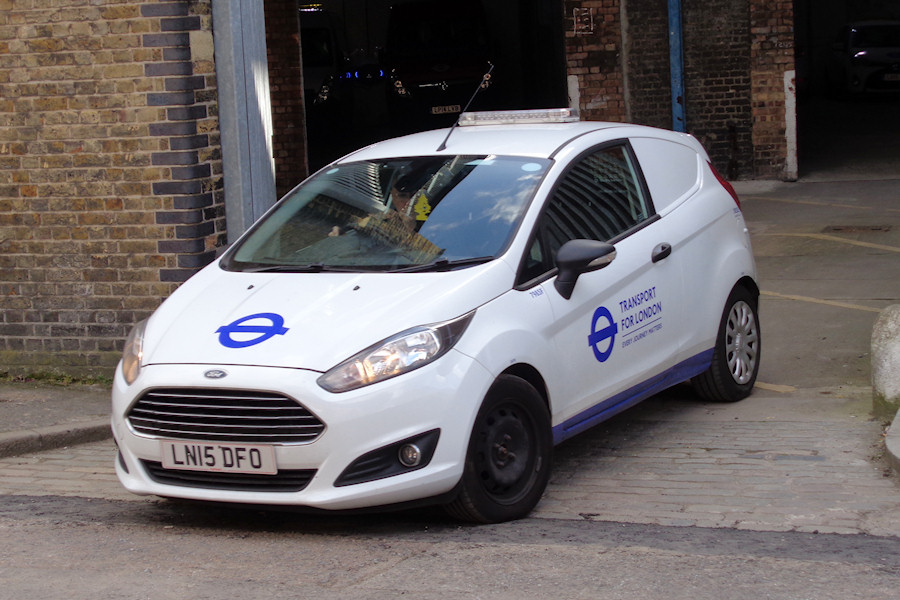 | Details: Ray had a productive visit to Chancel Street in Southwark on 16th April 2018. Caught leaving the base was TfL Ford Fiesta van 7985F, reported only a handful of times since it was new in 2015. TfL has 6 such vans, all of which are highly elusive. They don't appear to be based at Chancel Street but do visit from time to time. Just visible in the shadows behind is LBSL Passenger Data minibus 7828V. | ||||