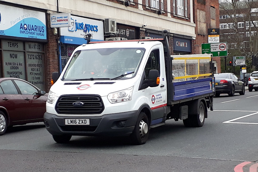 | Details: Another Edgware Track Depot vehicle seen at Archway on 1st April 2018 was Ford Transit dropside truck 8154F. Like 7805VW, this vehicle has previously only been reported at night, always at Northern Line stations. | |||