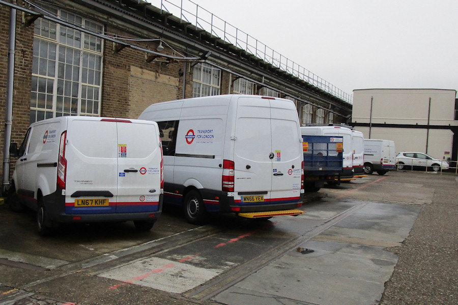 | Details: As usual, a variety of service vehicles could be found in the van yard at Acton Works on 10th April 2018. Nearest was Ford Transit Custom van 8506F, new the previous November. Beyond that was Mercedes-Benz Sprinter crew van 8257M, one of two delivered in 2016. Coincidentally, both of these vehicles have featured on LTSV before, with both photos being taken at dealerships prior to delivery. The other vehicles are Ford Transits of various types, plus Nissan Leaf electric car 7711N visible at the end. | |||||