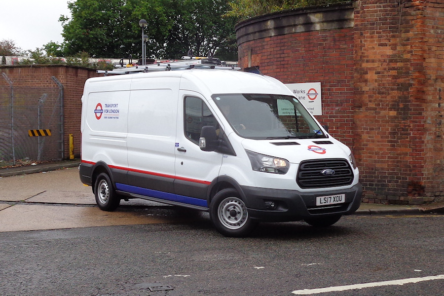 | Details: Fleetnumbers 8401 to 8412 are on a batch of long-wheelbase Ford Transit vans new in summer/autumn 2017 but which are mainly quite shy. Indeed two of the group have yet to be seen at all. 8403F is from the first four, which are mid-height rather than high-roof. It is based at Hainault Depot but was seen leaving Acton Works on 4th September 2017. | ||||