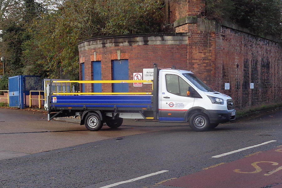 | Details: 8459F was the first of a trio of Ford Transit dropside trucks new in late 2017 and allocated to Stratford Market Depot. It was noted in service on 2nd November 2017 but, according to the DVLA, was not actually licensed until the 8th, suggesting a paperwork mix-up. On the 27th of the same month, Ray caught it leaving Acton Works. As with most LUL Transit dropsides, this one is based on the LWB ECF (Long WheelBase, Extended Chassis Frame) variant. It has a tail-lift and single cab, resulting in the longest possible load space. Having said that, a further stretched Transit chassis is now available, with wheelbase increased from 3.95m (on LWB and LWB ECF) to 4.52m. Designated the L5 variant, none have yet been taken as service vehicles. | ||||